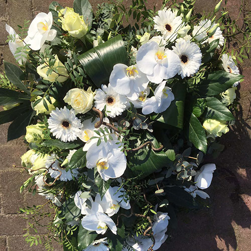 Graag maak ik voor u een stijlvol arrangement. Speciaal afgestemd op uw wensen waarin alles mogelijk is. Van een klein budget tot zelfs de aankleding van het geheel op locatie.